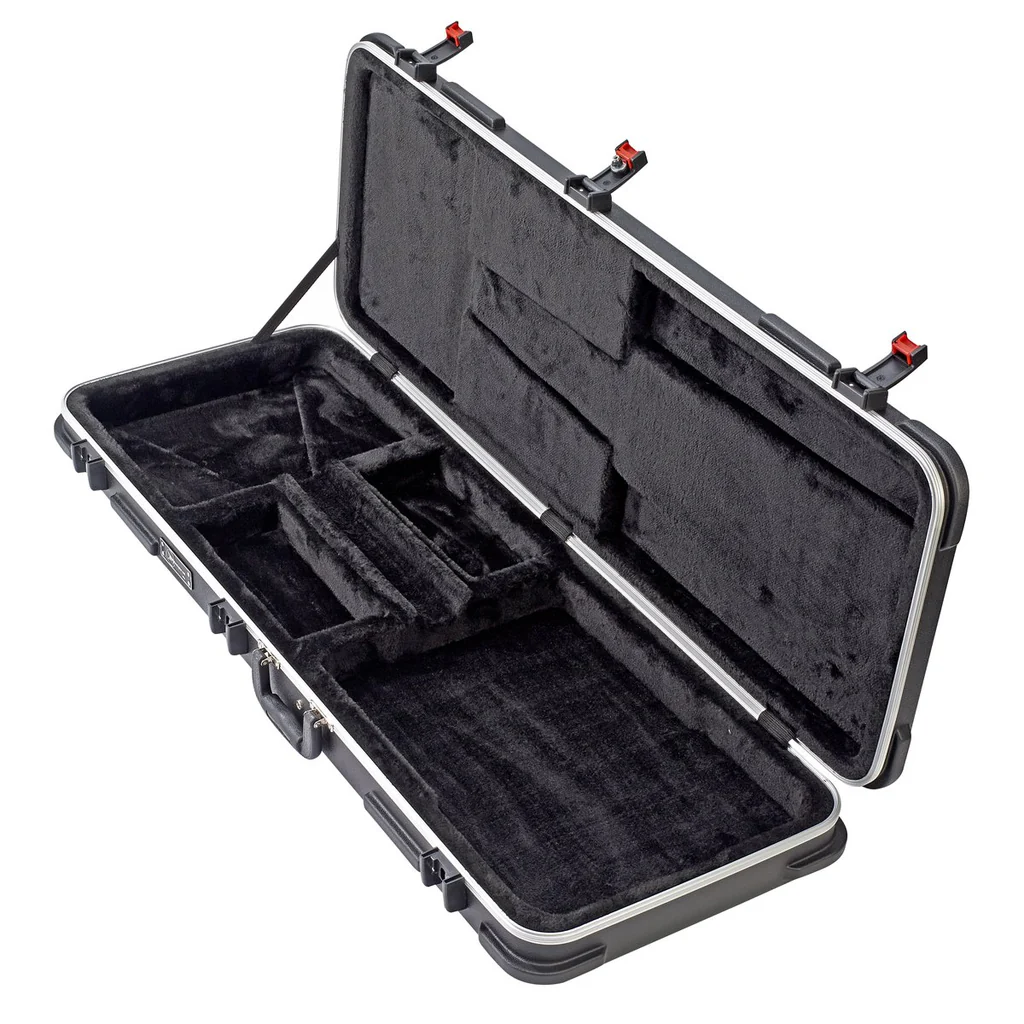 Now featuring the TSA-compliant trigger release latches! PRG ABS Cases are comprised of hard molded plastic with reinforced bumpers and reinforced aluminum valence to guard your cherished rig. Lightweight and extremely durable, your gear will be guarded from the stresses of the road. Injection-molded feet and carrying handle offer ample outer support. Interior neck rest gives added support while the storage compartment gives plenty of room to store your strings, picks, capo, tuner, and other small accessories.
